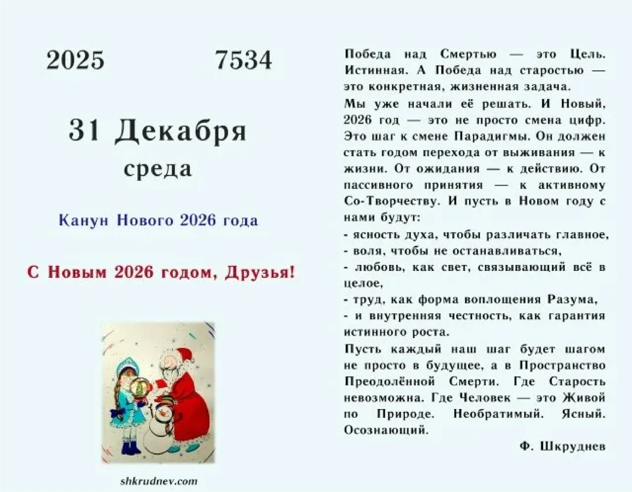 Среда, 31 декабря
