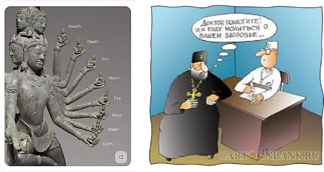 Медицина древности тесно переплеталась с магией и религией. В очень Древней Греции основателем медицины почитался Асклепий, он же Эскулап, обучавшийся у кентавра Хирона врачеванию и даже воскрешению мёртвых. Но Эскулап воскрешал не из благих побуждений и по заслугам почившего, а исключительно за плату. Олимпийские боги возмутились такому махровому материализму и нажаловались Зевсу. Громовержец, как и положено, отреагировал на общественное заявление и поразил Эскулапа молнией, но потом передумал, оживил, и – обожествил его. И это тоже не мои фантазии! Каждый желающий может преспокойно отыскать эти россказни в любом официальном учебнике по истории медицины. В Египетских пирамидах, как известно, гробницы фараонов просто забиты глиняными черепками, зёрнами пшеницы, разными историческими артефактами, и медицинскими трактатами. Все эти «археологические» чудеса в них находят потому, что искателям артефактов, т.е. выпускникам престижных университетов, необходимо предоставлять поле для сенсаций, а маститым учёным – морковку Нобелевки. И первые, и вторые регулярно оплачиваются различными меценатами и иными структурами.
