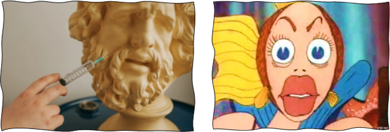 Возможно, читателю покажется удивительным не количество предлагаемых «услуг», а необоснованная, и даже как бы иступлённая вера в эти услуги самих потребителей. Похоже, пациенты даже не задумываются о грядущих последствиях в виде серьёзных заболеваний в ближайшем будущем, они просто жаждут хоть ещё на немного обмануть время, отложить старение, и удержать эфемерную красоту и юность, покидающие их так стремительно и так для них неизбежно. Их старость, их смерть прячется в уголках глаз и губ. Эти люди устремляются в отчаянную битву за ускользающую молодость: скупают кремы и элексиры с экстрактом белужьей икры или маточного молочка, с росой тибетских лепестков роз, с пудрой из рогов и копыт самого чёрта. Но всё это лишь дорогие, пусть и красивые, припарки: проходит всего два десятилетия, и молодость неизбежно уходит навсегда. Фармакологией невозможно победить ни старость, ни смерть. Кстати, почему появляются т.н. «щёки бульдога», и опускаются веки? Потому что были удалены моляры, т.е. большие коренные зубы! И сколько бы люди ни делали тредлифтинг или вкалывали Ботокс, щёки всё равно отвиснут, а видимый результат замедления старения будет временный, зато нарушения в работе мозга - перманентными . Программу старения Ботоксом не обманешь и вспять не повернёшь! О том, что Ботокс это нейротоксин, наверное, не имеет смысла даже упоминать – люди будут продолжать делать себе эти уколы, даже не осознавая, что именно поэтому у них болит голова после инъекций. Они не думают о том, что через 10 лет у них будут поражены слизистые оболочки дыхательных путей, желудочно-кишечного тракта, и наступит дыхательная недостаточность в разной форме – от лёгкой до острой. Тахикардия, параличи, повышение АД, гнусавость, нарушение глотания, речи, и зрения – все эти прелести они получат букетом. И их платным визитам будут весьма рады всевозможные «узкие» специалисты, у которых - точно так же, как и у их пациентов – через телевиденье, кино, и рекламу вменены в мозг поведенческие Программы. Пример: эпидемия с накачкой филлерами губ. Но не все подвержены подобному гротескному безумию.