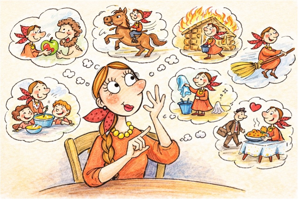 Так, как мужчина, как правило, не сразу понимает командный язык женщины, она, зная о гравитационной основе мужского мышления (вспомним яблоко Ньютона), иногда доносит смысл своих выражений с помощью более материальных аргументов — инерционной массы утюга или скалки. Чем тяжелее аргумент, тем доходчивее. И если убрать юмор, за всем этим скрывается одна важная мысль. Женщина работает не только с формой, но и с мерой. Она чувствует дисбаланс раньше, чем он проявляется в фактах. Она передаёт информацию не только словами, но состоянием. А в эпоху Перехода, когда скорость изменений возрастает все более и более, именно такая способность — мгновенно считывать и удерживать внутреннюю соразмерность — становится особенно ценной.