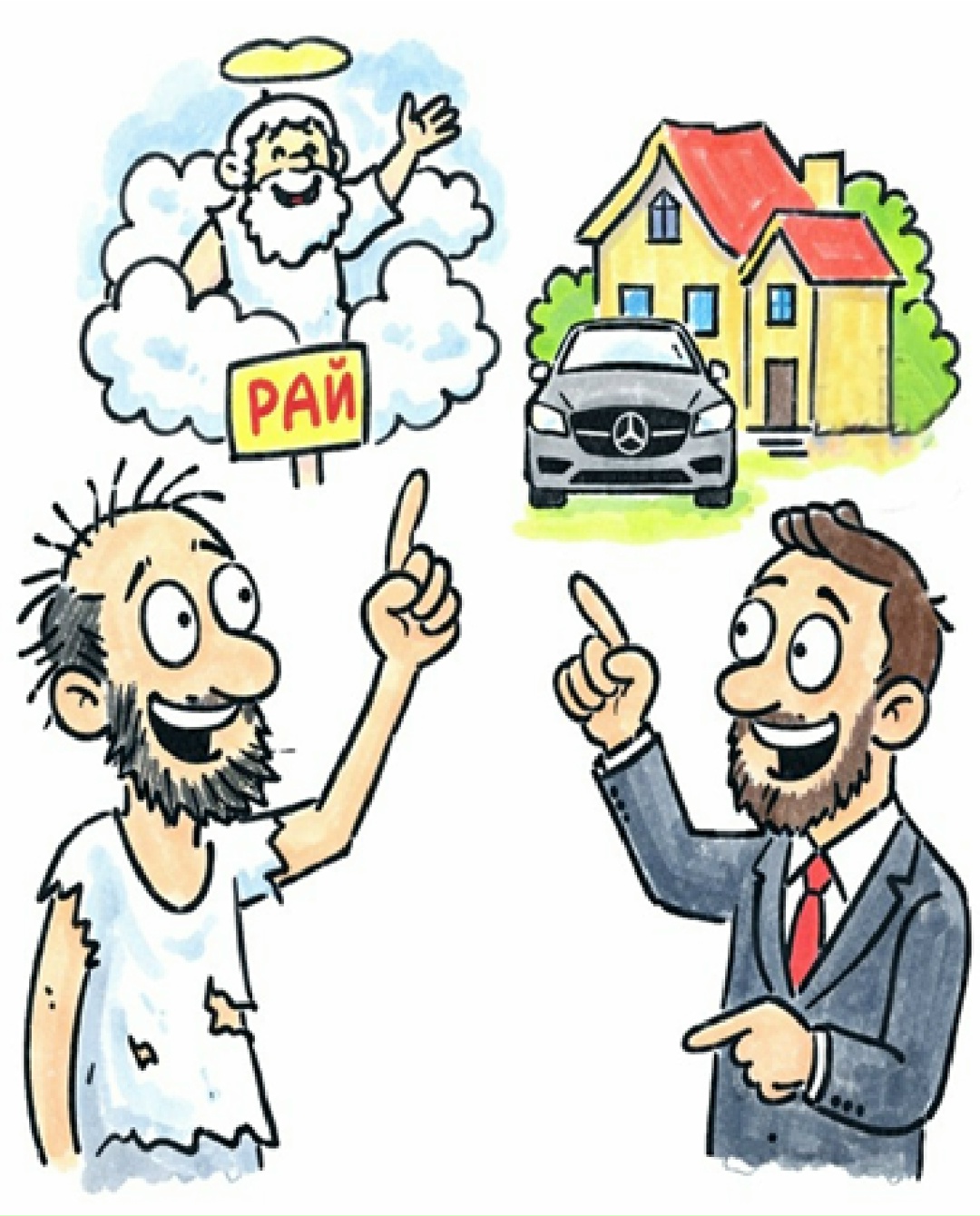 Атеисты, в отличие от религиозного мировоззрения, считают высшей целью земную жизнь и материальное благополучие человека. Соответственно, в рамках такого понимания мира, добром считается всё, ЧТО СПОСОБСТВУЕТ сохранению жизни, укреплению здоровья и умножению материальных благ, а злом — всё, что этой цели препятствует. Если какое-либо действие в моменте, приносит удовольствие или выгоду, но в конечном итоге наносит вред жизни, здоровью или благополучию человека, ОНО ОЦЕНИВАЕТСЯ, как зло. И наоборот: если действие сопровождается временными неудобствами, дискомфортом или даже страданием, но в конечном итоге приводит к укреплению здоровья, улучшению жизни или росту благополучия, оно оценивается, как добро. Например, человек, идущий на болезненную операцию, может испытывать страх, боль и серьёзный дискомфорт. Но он воспринимает эту операцию как благо, потому что понимает: временная боль избавит его от постоянных страданий и позволит сохранить жизнь или здоровье. Точно так же и верующий человек, отказывающийся от земных радостей, принимающий ограничения и даже страдания, НАДЕЕТСЯ ПОЛУЧИТЬ вознаграждение в иной, более высокой форме существования. Он воспринимает свои лишения как добро, потому что считает, что они приближают его к главной цели — спасению души и вечной жизни. Но существует и третья точка зрения. Некоторые считают, что понятия добра и зла являются абсолютными категориями. Согласно этому представлению, они не зависят ни от целей человека, ни от обстоятельств, ни от среды, в которой он живёт. Добро и зло якобы существуют сами по себе — как вечные и неизменные нравственные законы. С этой точки зрения ЛЮБОЙ ПОСТУПОК является либо хорошим, либо плохим, независимо от того, ради какой цели он совершен, в какой ситуации он совершен и кем он совершен. На первый взгляд такая позиция кажется привлекательной. Она создаёт ощущение устойчивой и неизменной нравственной опоры. Однако реальная жизнь показывает, что большинство людей, НА ПРАКТИКЕ, пользуются одновременно двумя системами оценки. С одной стороны, они оценивают действия исходя из своей главной цели — личной, социальной или духовной. С другой стороны, в их сознании продолжают действовать установки, оставшиеся от религиозных традиций, культурных норм и общественных представлений. В результате возникает двойственность. Человек одновременно ориентируется на разные критерии оценки, которые НЕ ВСЕГДА совпадают. Это порождает внутренние противоречия, колебания и неуверенность. В итоге человек оказывается в состоянии половинчатости: он не способен до конца следовать ни одной системе ценностей. Такое состояние делает человека средним, неопределённым, лишённым внутренней цельности. Он становится тем, о ком говорят: «ни рыба ни мясо» — человеком без чёткой внутренней опоры.