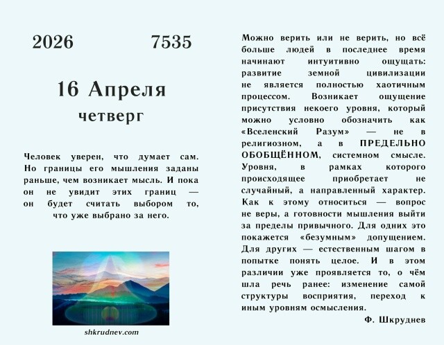 Четверг, 16 апреля
