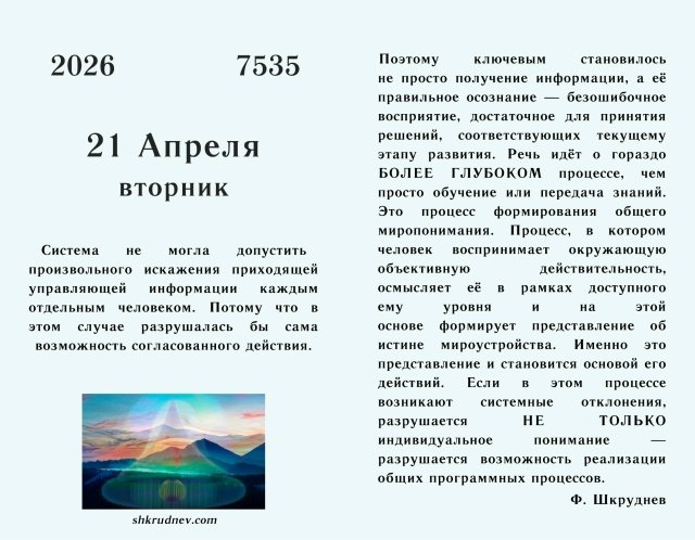 Вторник, 21 апреля